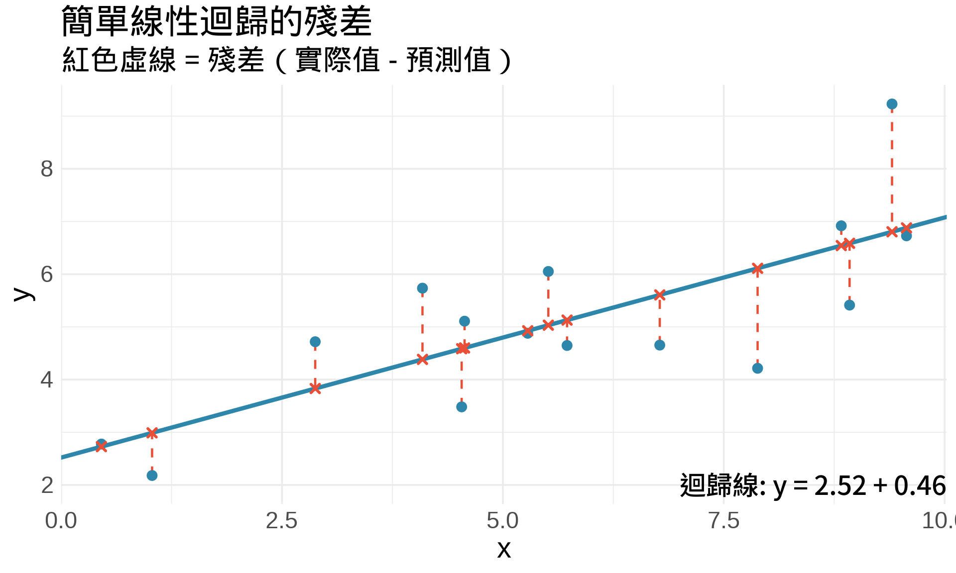 #| fig-cap: "殘差是「實際值」與「預測值」的垂直距離"